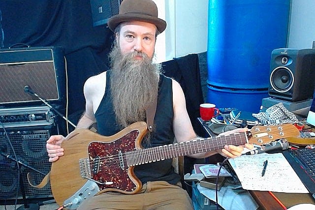 In my case, I am writing a concept album that started with the question: ‘What if Orpheus, the mythical singer, was a woman, and her lover, Eurydice, were a man’. I then renamed them ‘Orphea’ and ‘Eurydikos’. To begin with I was building a microtonal (24EDO)3 guitar with my friend, luthier Peter Stephen. I like to name the instruments I build, so I named the guitar Orphea, the female Orpheus, as ‘she’ will help me learn a new way to sing. The goal, which I am now gradually fulfilling, is to explore middle-eastern tonalities.