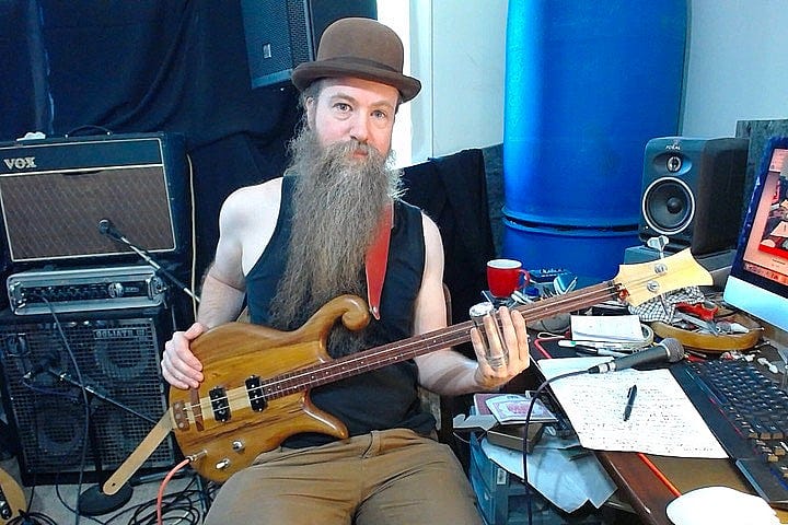 Mark Sandman played a two string bass tuned to fifths, with a guitar slide. Interestingly just this year Eastwood Guitars have brought out a tribute model, so Mark seems to be back in the zeitgeist. Just in time.