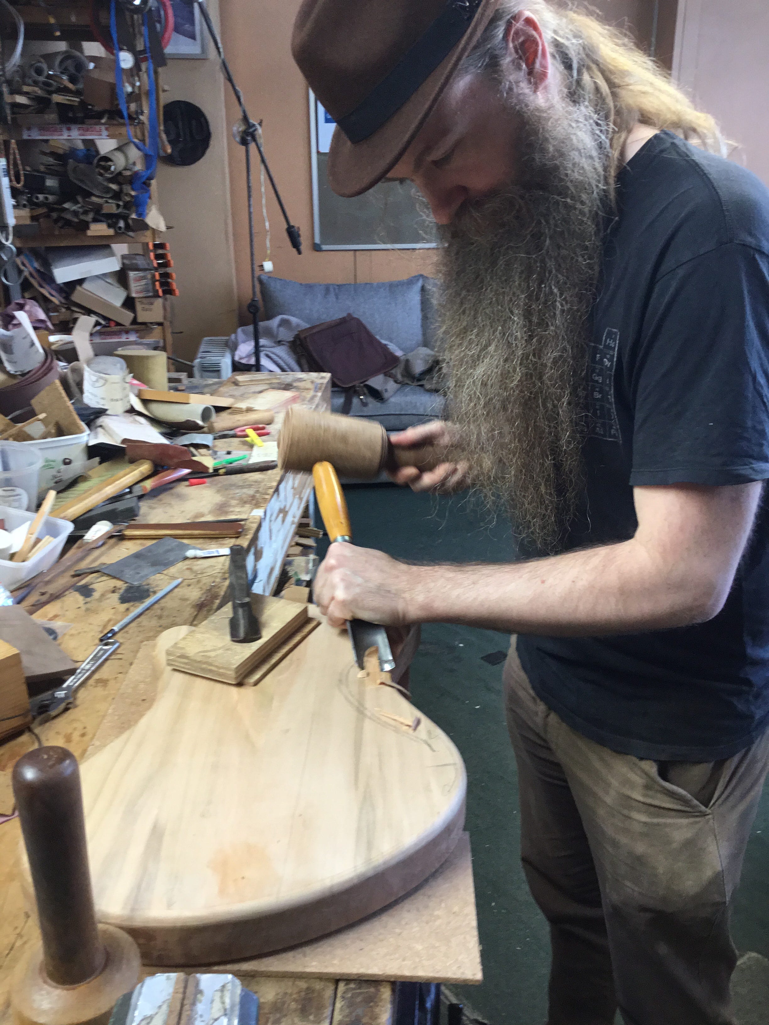 After much effort, I ended up with a nearly completed track, albeit without a bass. I thought I would need to modify one of my basses with extra frets and booked some more time with Peter in his instrument workshop, causing a creative pause.
